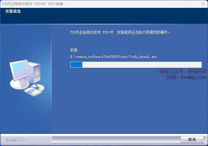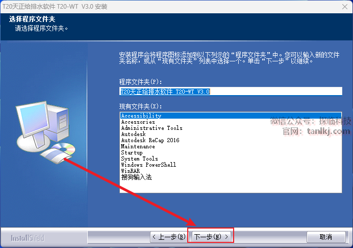 安装包包含的产品有:建筑、电气、结构、暖通、给排水。它们的安装步骤完全一样,本文以“天正给排水”为演示,其它产品请参考该安装步骤安装。