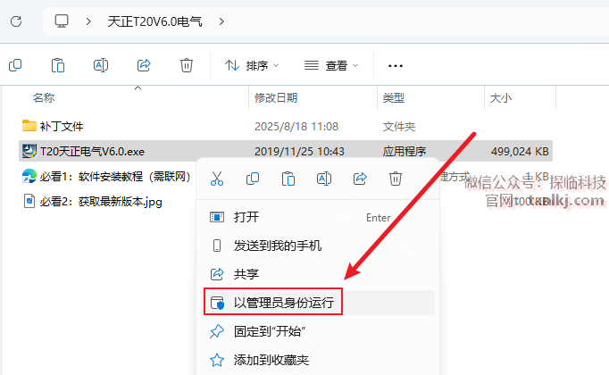 打开解压后的文件夹,右键程序【T20天正电气V6.0】,点击【以管理员身份运行】。