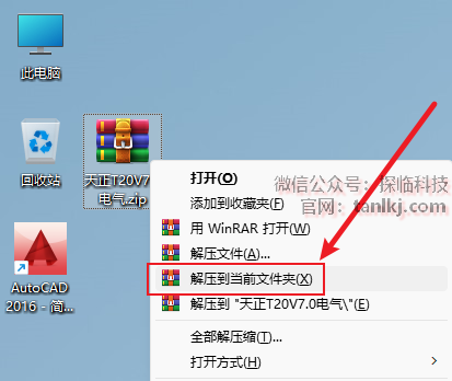 解压下载后的软件包。右键软件包,点击【解压到当前文件夹】(win11系统需先点击【显示更多选项】)。 (未安装解压软件可以点击此处查看:如何安装解压软件?)