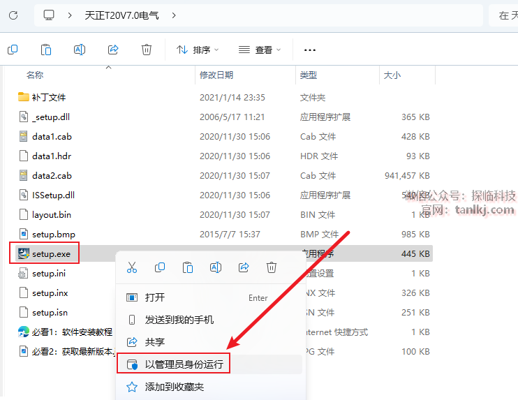 打开解压后的文件夹,右键程序【setup】,点击【以管理员身份运行】。