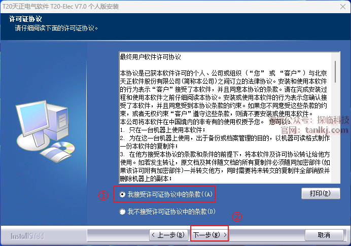 ①勾选【我接受许可证…】;