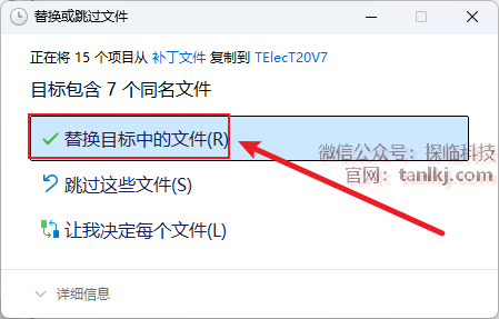 点击【替换目标中的文件】。
