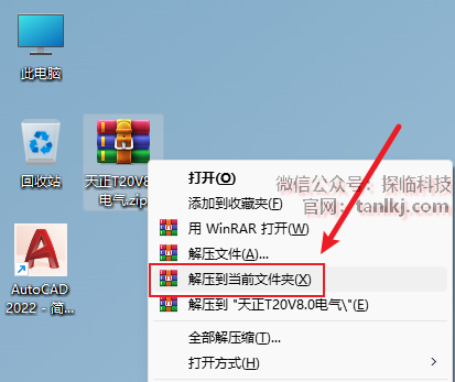 天正包含的产品有:建筑、电气、结构、暖通、给排水。它们的安装步骤完全一样,本文以“天正电气”为演示,其它产品请参考该安装步骤安装。