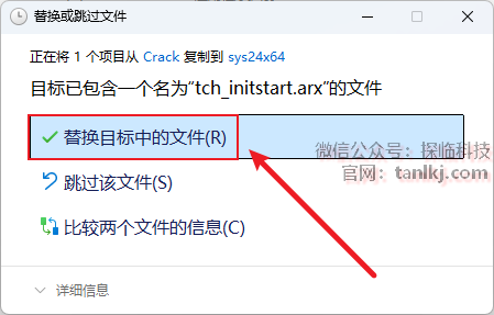 点击【替换目标中的文件】。