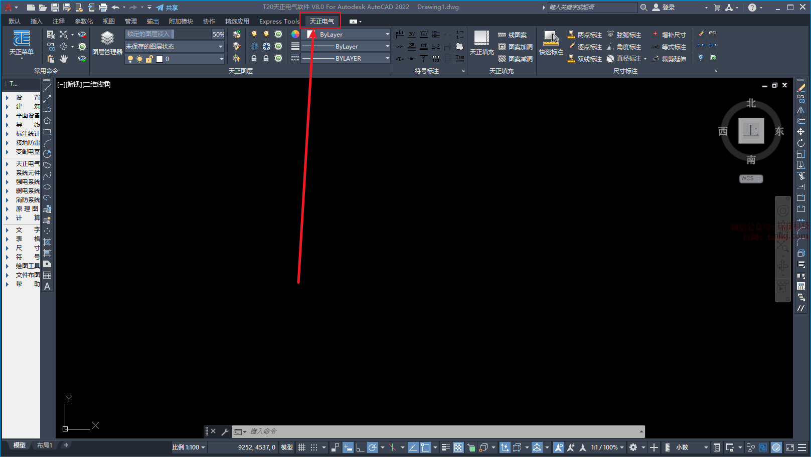 在桌面,运行软件【T20天正电气V8.0】。