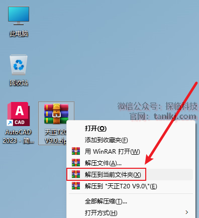 解压下载后的软件包。右键软件包,点击【解压到当前文件夹】(win11系统需先点击【显示更多选项】)。 (未安装解压软件可以点击此处查看:如何安装解压软件?)