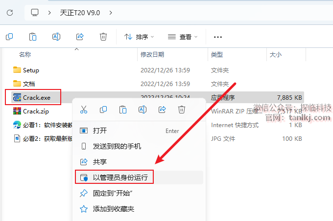 右键解压出来的程序【Crack】,点击【以管理员身份运行】。