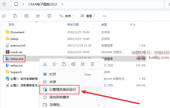 打开解压后的文件夹,右键程序【setup】,点击【以管理员身份运行】。
