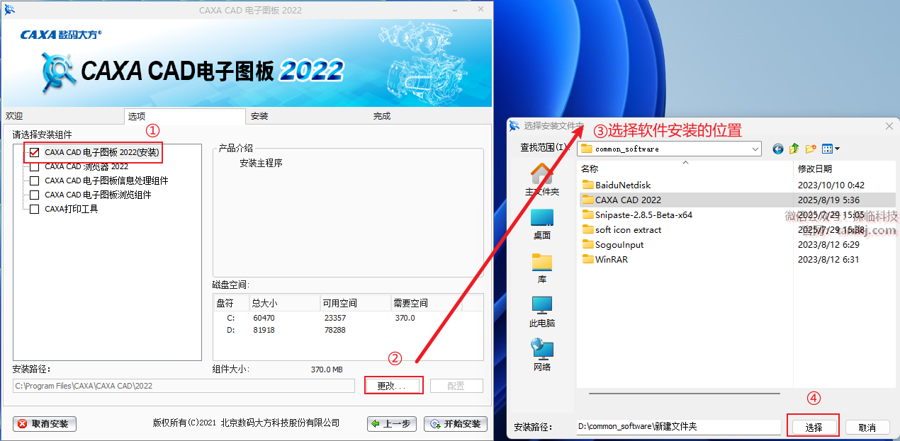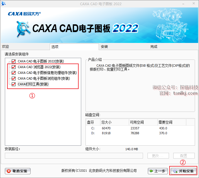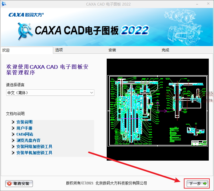 ①勾选【CAXA CAD 电子图板2022(安装)】;