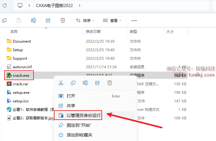 右键刚刚解压出来的程序【crack】,点击【以管理员身份运行】。