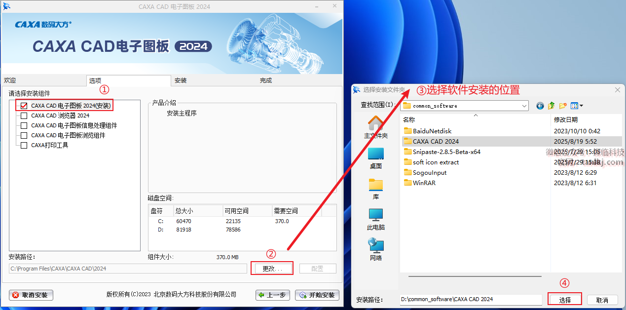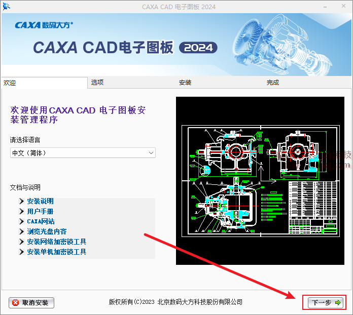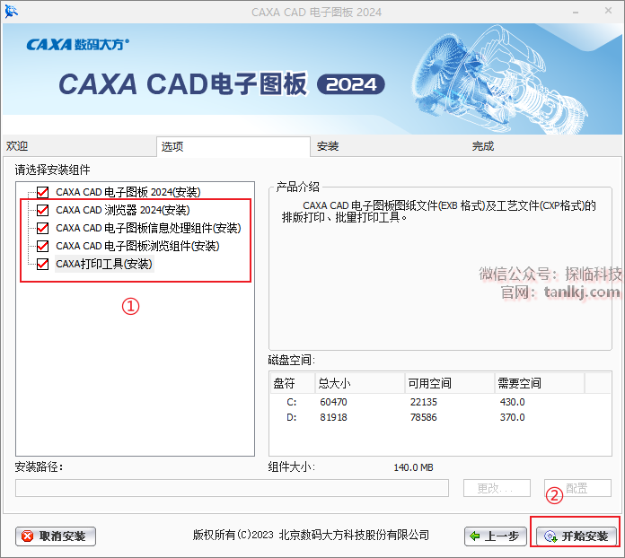①勾选【CAXA CAD 电子图板2024(安装)】;