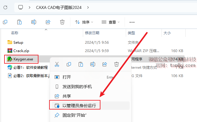 右键刚刚解压出来的程序【Keygen】,点击【以管理员身份运行】。