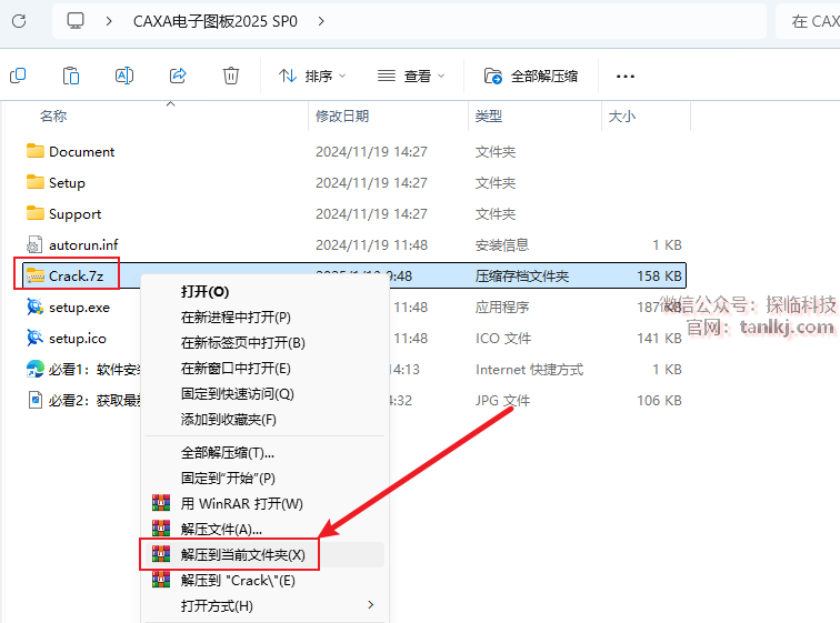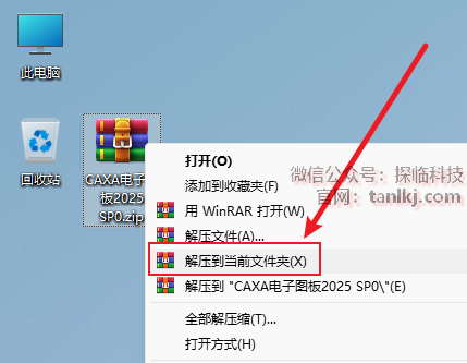 解压下载后的软件包。右键软件包,点击【解压到当前文件夹】(win11系统需先点击【显示更多选项】)。 (未安装解压软件可以点击此处查看:如何安装解压软件?)