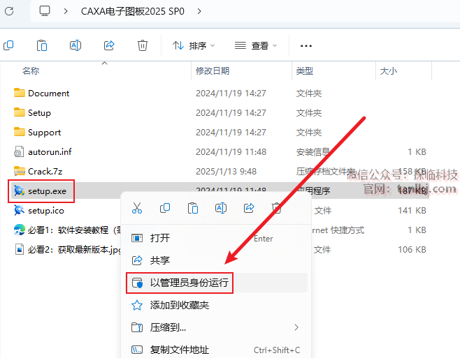 打开解压后的文件夹,右键程序【setup】,点击【以管理员身份运行】。