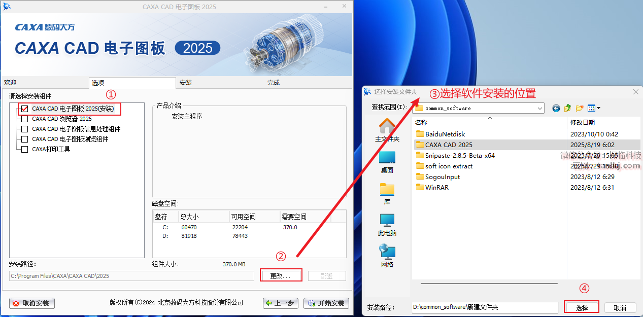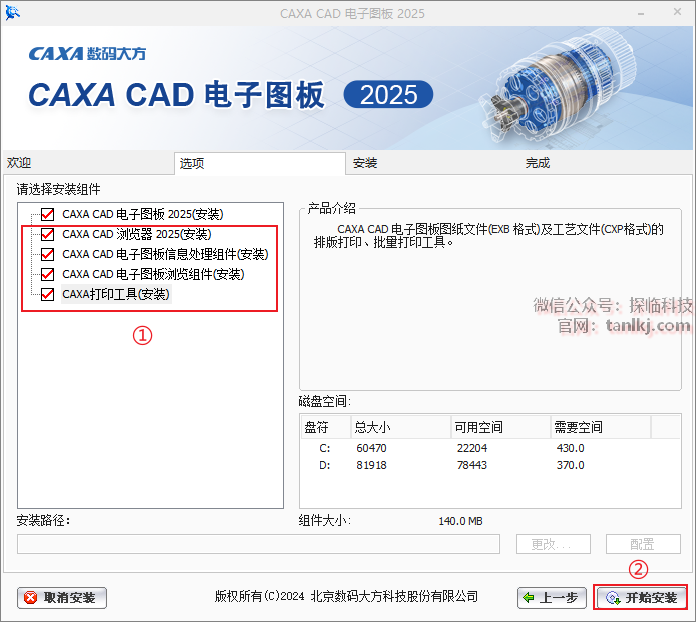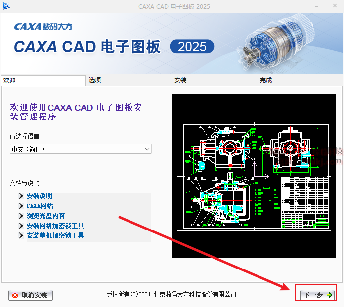 ①勾选【CAXA CAD 电子图板2025(安装)】;