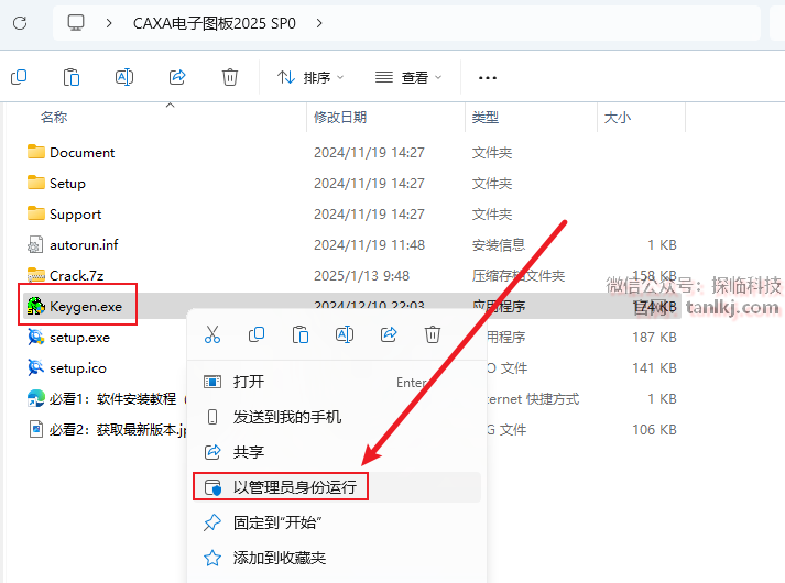 右键刚刚解压出来的程序【Keygen】,点击【以管理员身份运行】。