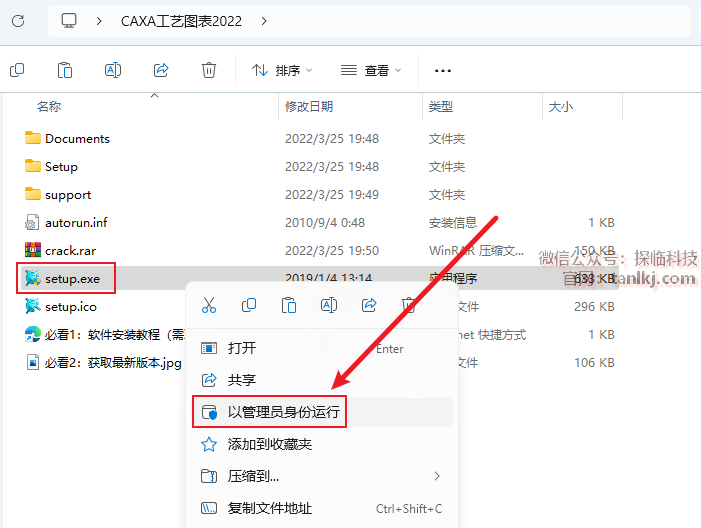 打开解压后的文件夹,右键程序【setup】,点击【以管理员身份运行】。