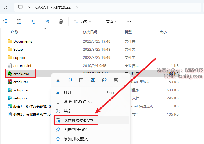 右键刚刚解压出来的程序【crack】,点击【以管理员身份运行】。