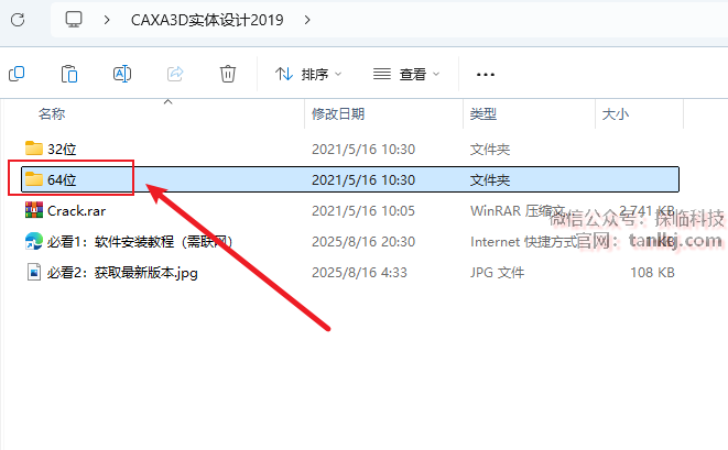 打开解压后的文件夹,双击打开文件夹【64位】(如果自己电脑是32位的,就打开文件夹【32位】)。