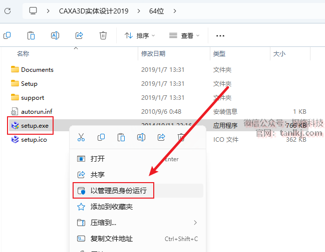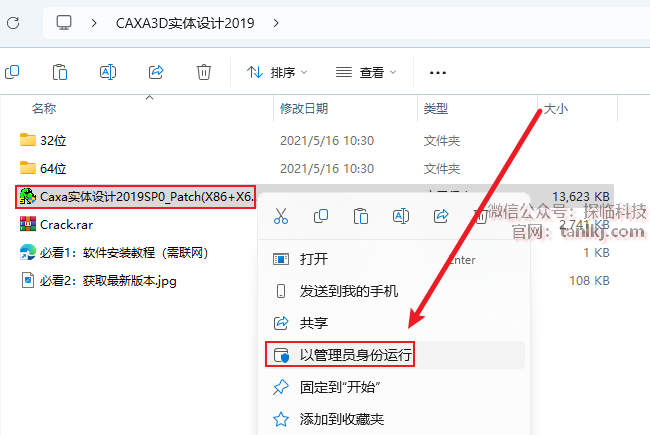 右键刚刚解压出来的程序【Caxa实体设计…】,点击【以管理员身份运行】。