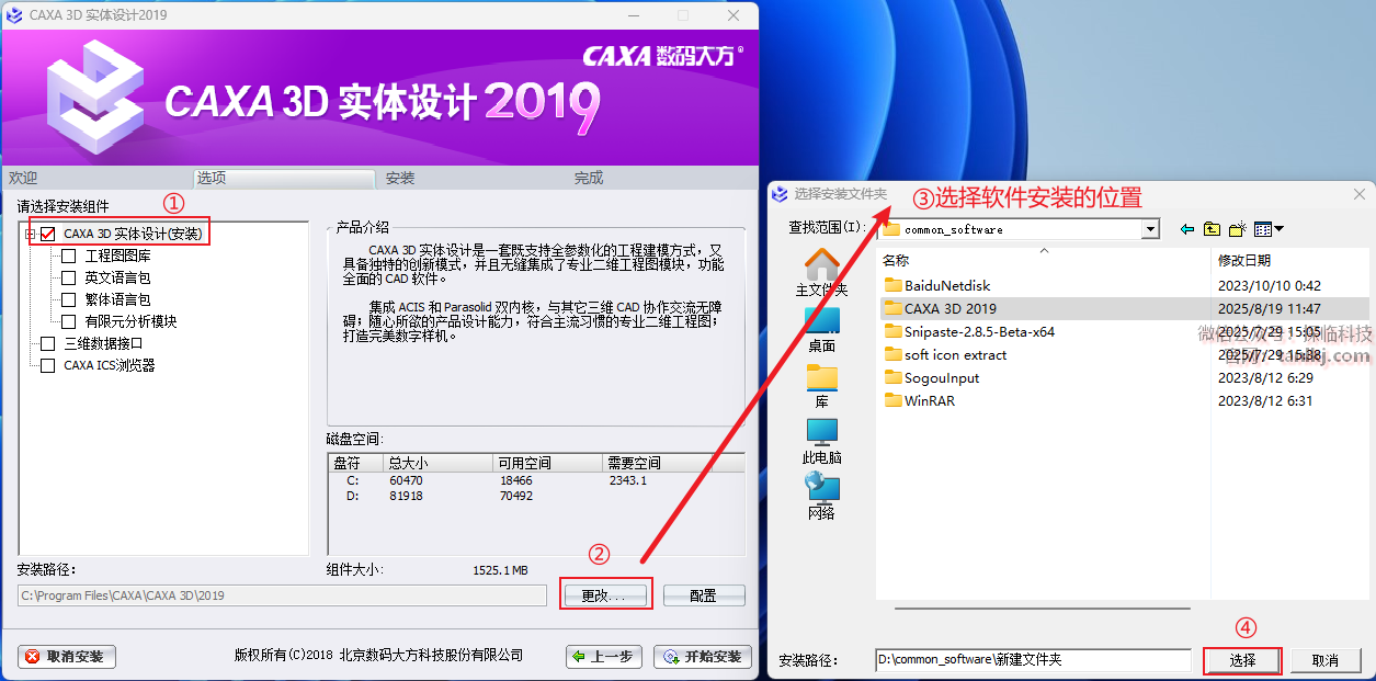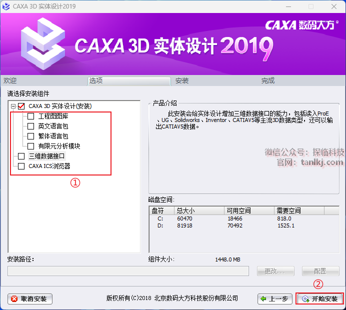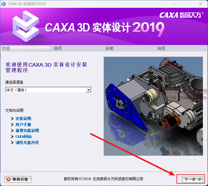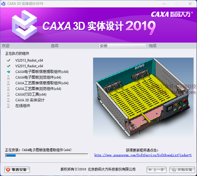 ①勾选【CAXA 3D实体设计(安装)】;