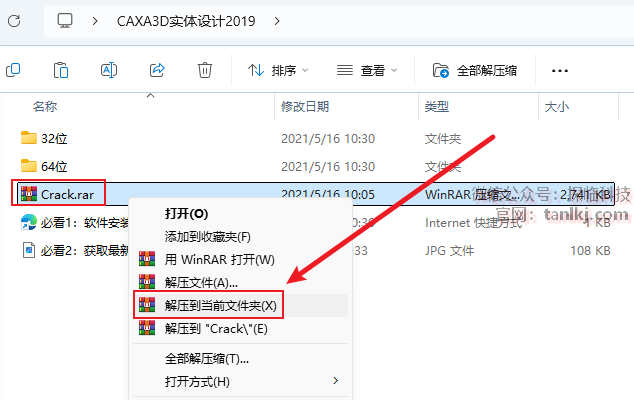 打开之前解压后的文件夹,解压文件【Crack】。