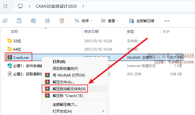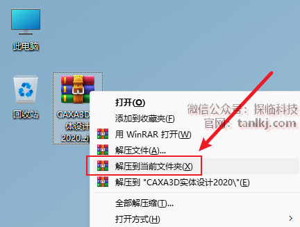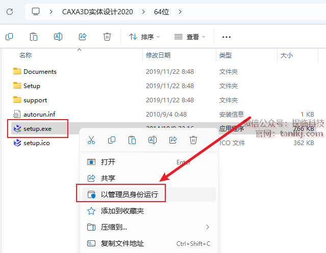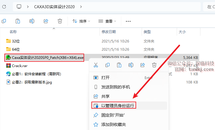 右键刚刚解压出来的程序【Caxa实体设计…】,点击【以管理员身份运行】。