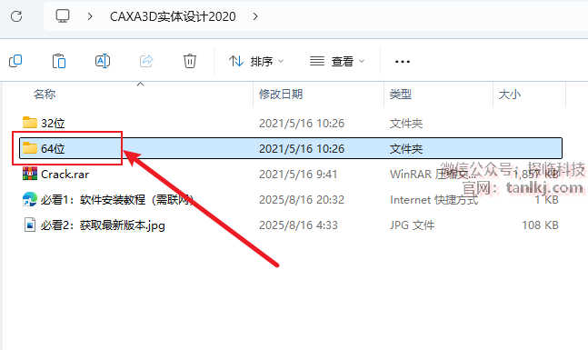打开解压后的文件夹,双击打开文件夹【64位】(如果自己电脑是32位的,就打开文件夹【32位】)。