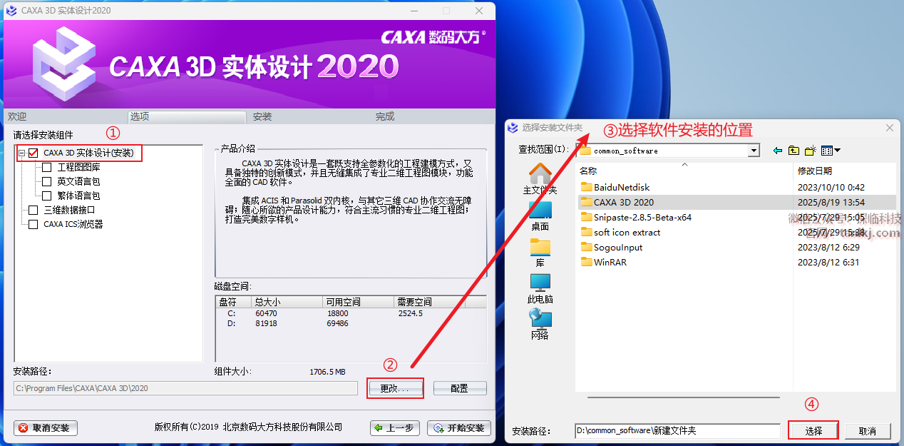 ③选择软件安装的位置,安装路径中不能包含任何中文字符;
