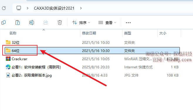打开解压后的文件夹,双击打开文件夹【64位】(如果自己电脑是32位的,就打开文件夹【32位】)。