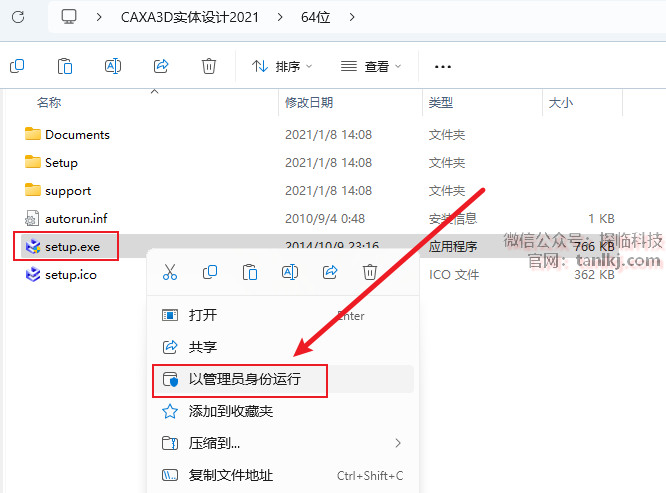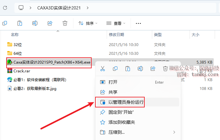 右键刚刚解压出来的程序【Caxa实体设计…】,点击【以管理员身份运行】。
