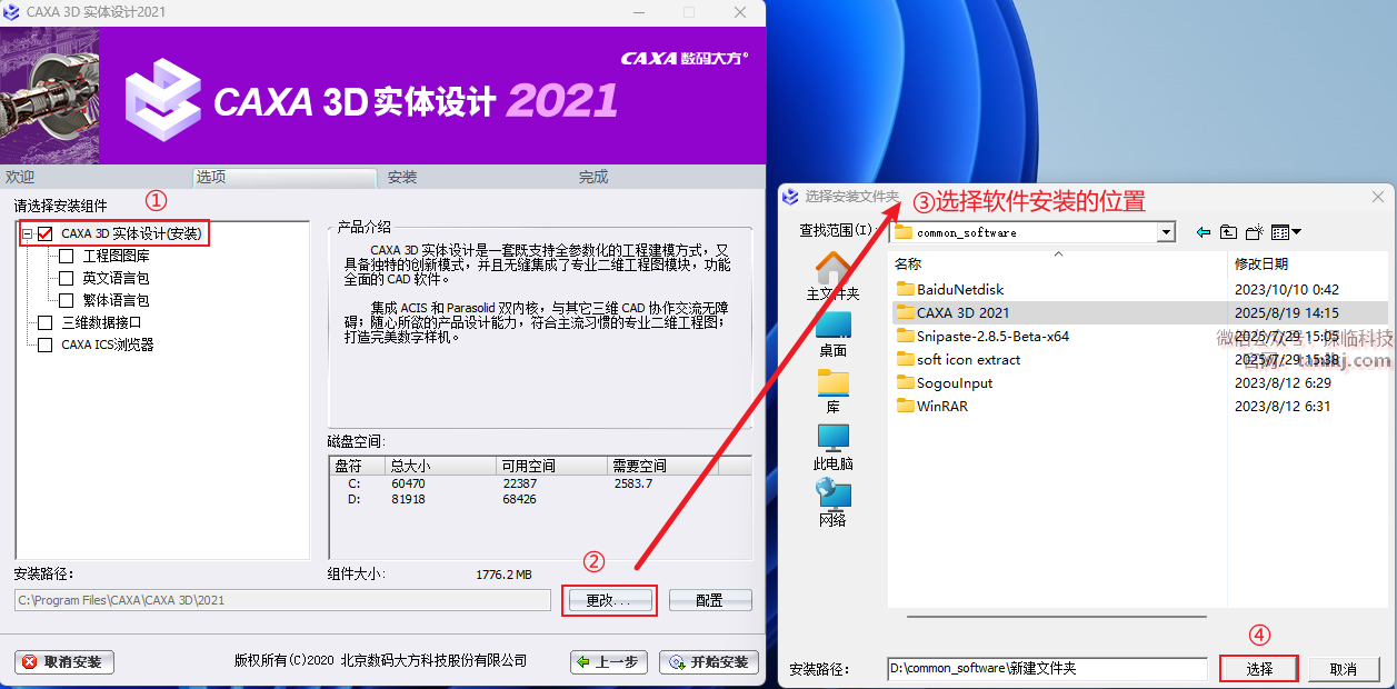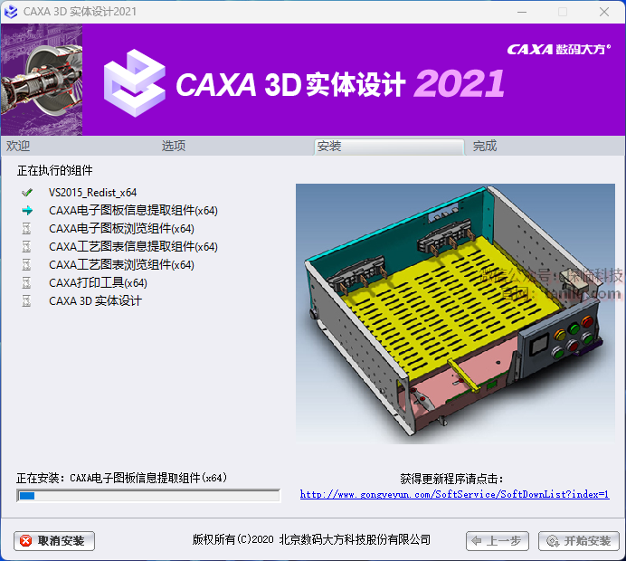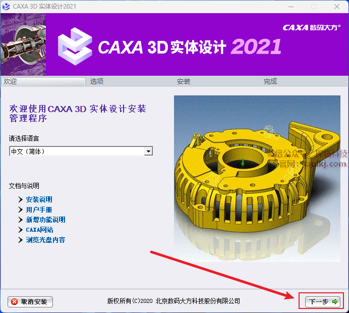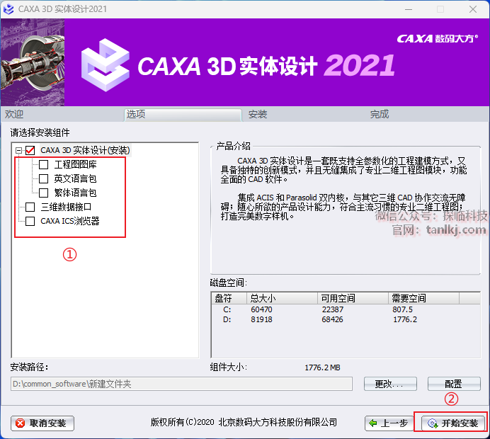 ①勾选【CAXA 3D实体设计(安装)】;