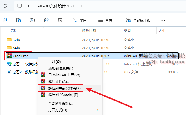 打开之前解压后的文件夹,解压文件【Crack】。