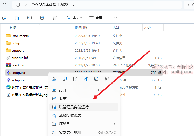 打开解压后的文件夹,右键程序【setup】,点击【以管理员身份运行】。