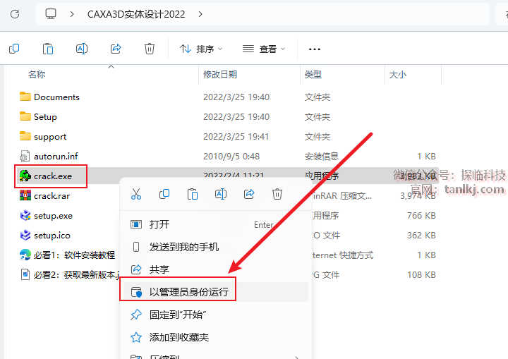右键刚刚解压出来的程序【crack】,点击【以管理员身份运行】。