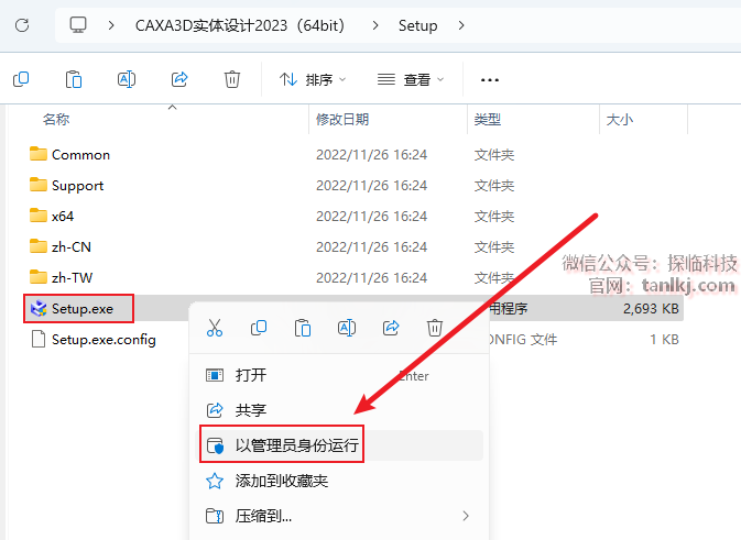 右键程序【Setup】,点击【以管理员身份运行】。