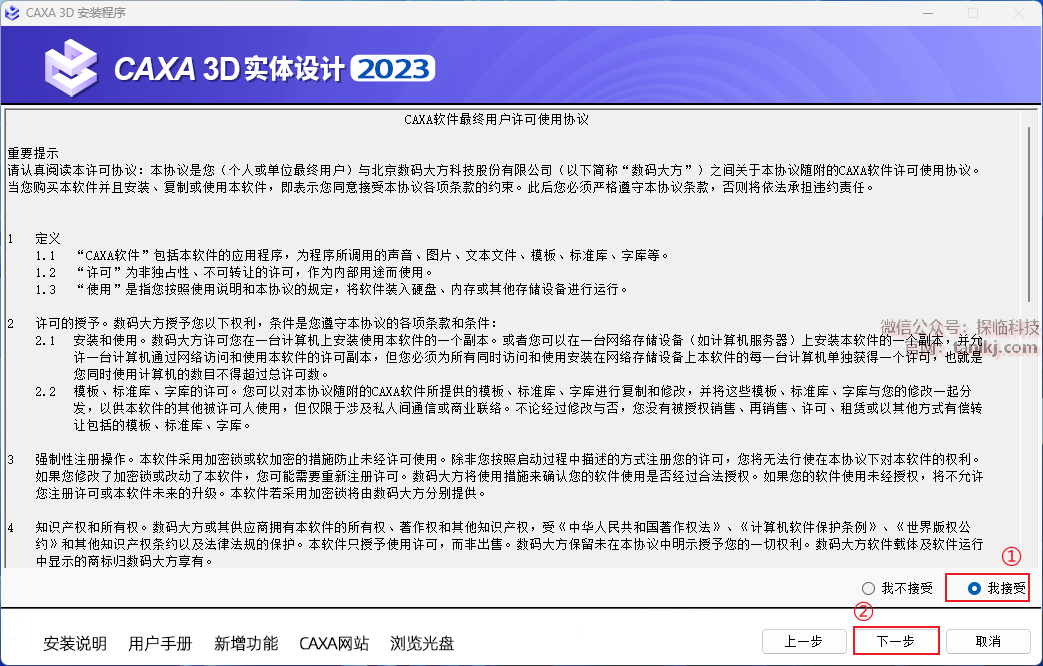 ①勾选【我接受】;