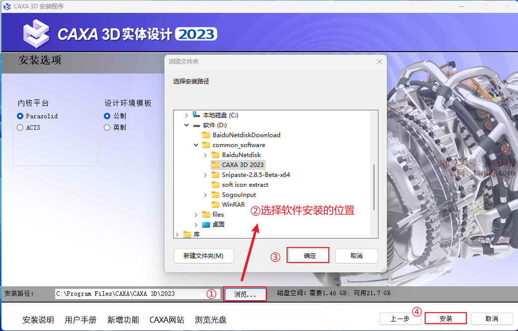 ②选择软件安装的位置,安装路径中不能包含任何中文字符;