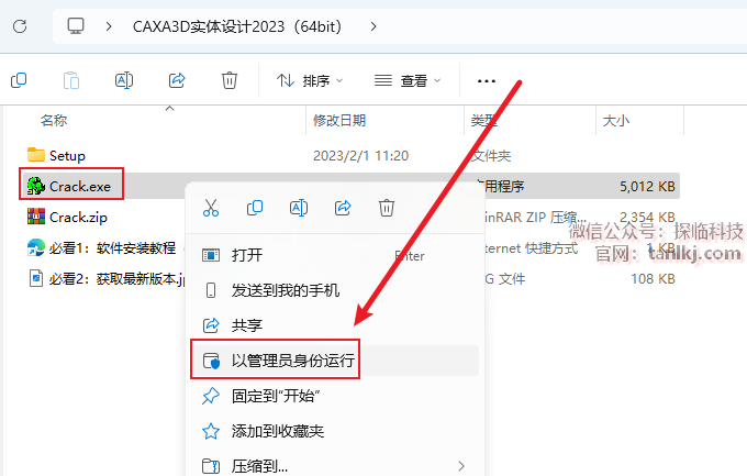 右键刚刚解压出来的程序【Crack】,点击【以管理员身份运行】。