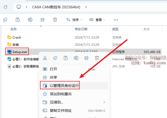打开解压后的文件夹,右键程序【Setup】,点击【以管理员身份运行】。
