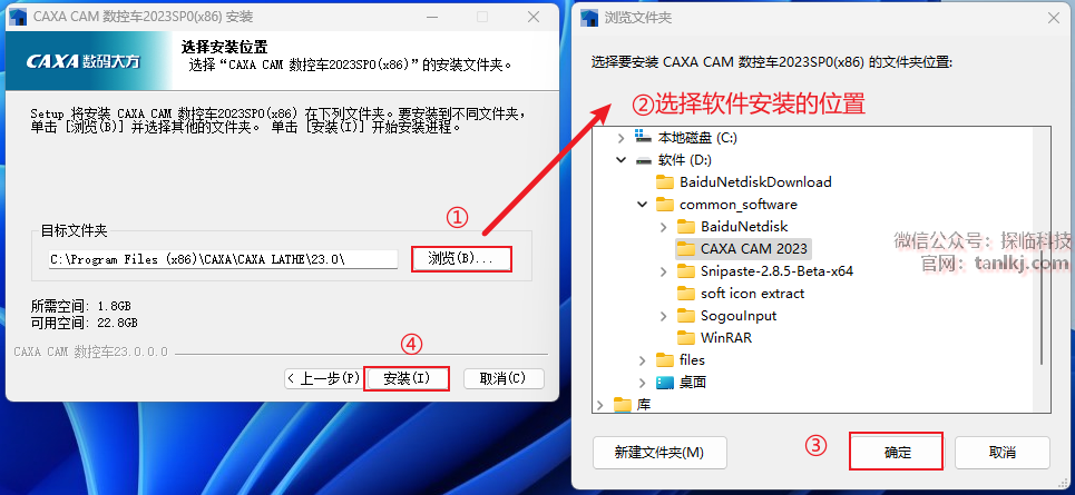 ②选择软件安装的位置,安装路径中不能包含任何中文字符;