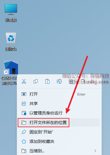 在桌面,右键软件【CAXA CAM数控车2023】,点击【打开文件所在的位置】。