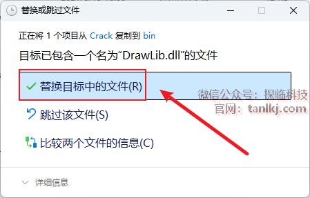 点击【替换目标中的文件】。