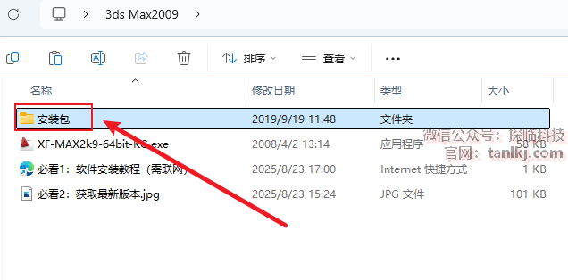 打开解压后的文件夹,双击打开文件夹【安装包】。