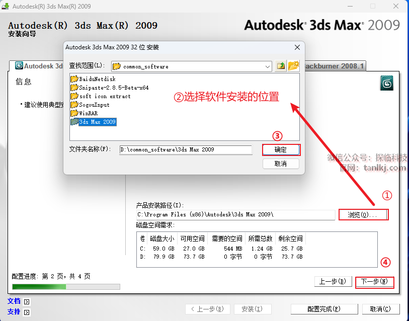 ②选择软件安装的位置,安装路径不能包含任何中文字符;