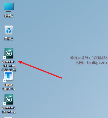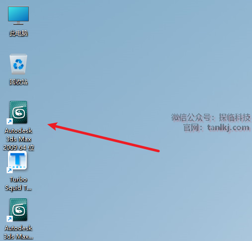 在桌面,双击运行软件【Autodesk 3ds Max 2009 64位】。