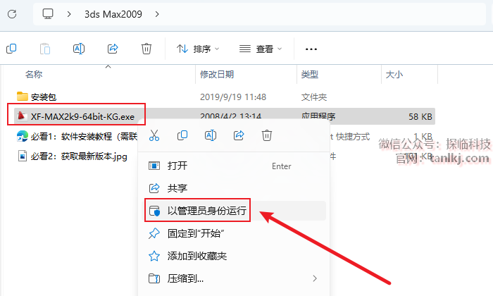打开之前解压后的文件夹,右键程序【XF-MAX2k9-64bit-KG】,点击【以管理员身份运行】。