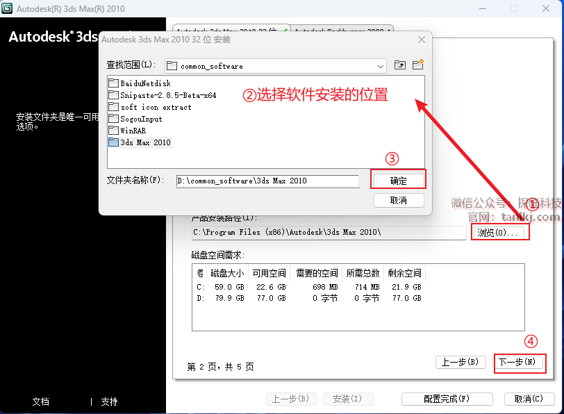 ②选择软件安装的位置,安装路径不能包含任何中文字符;