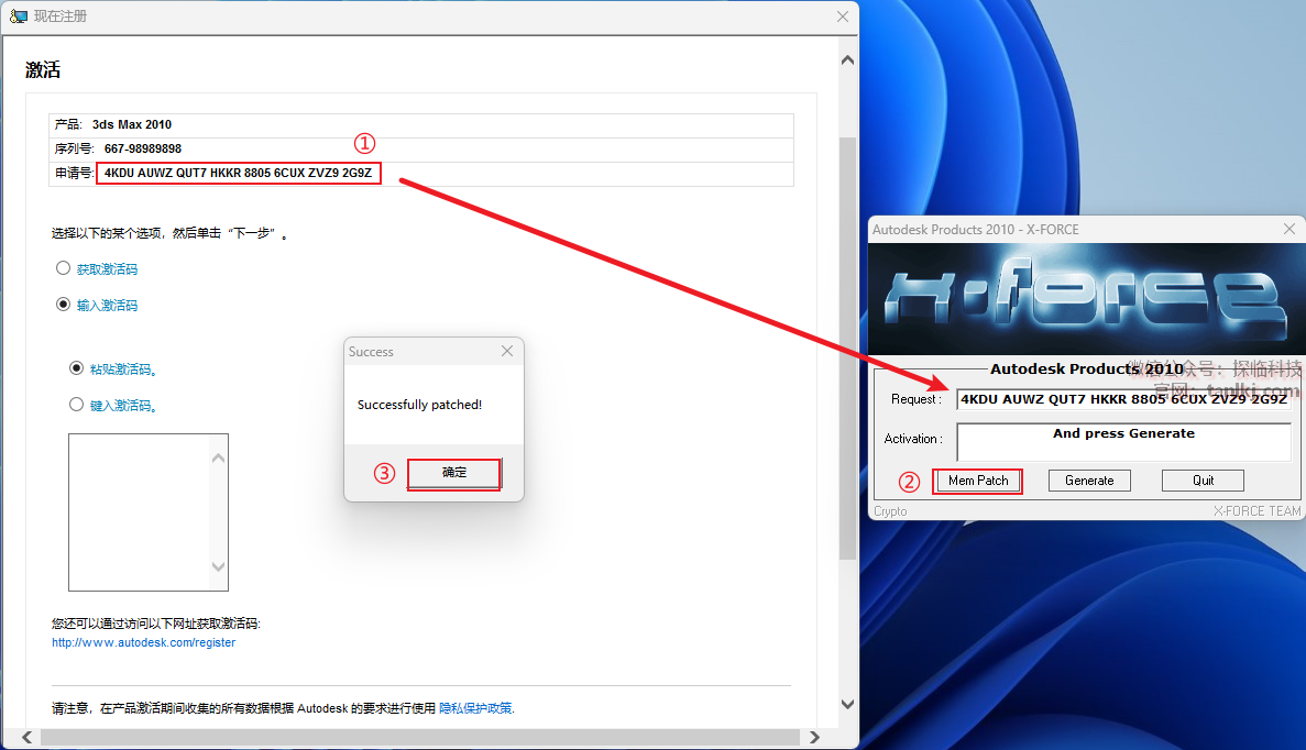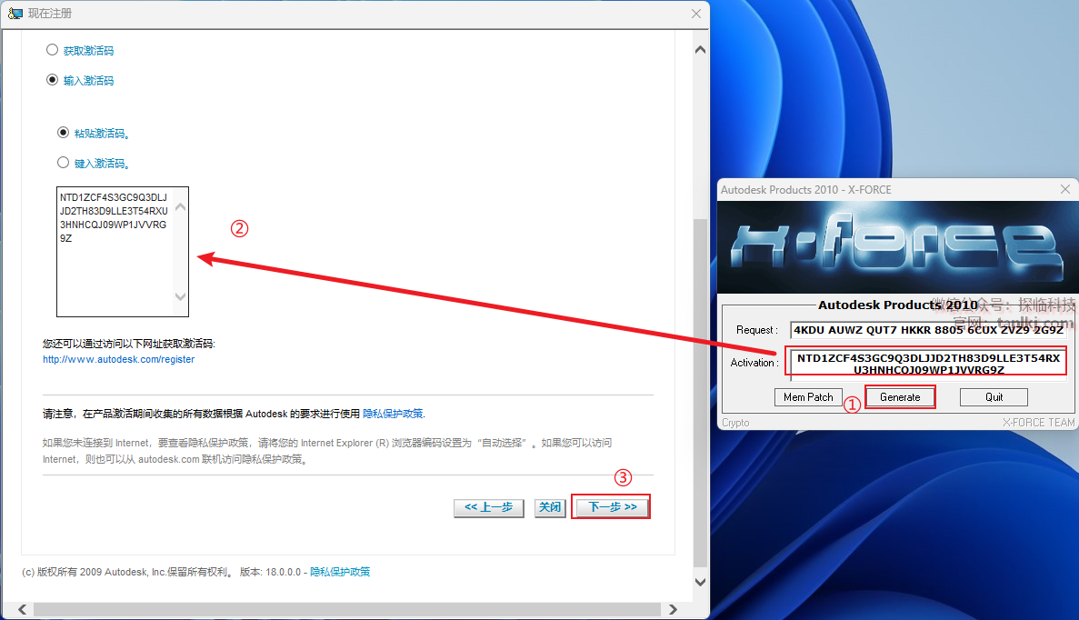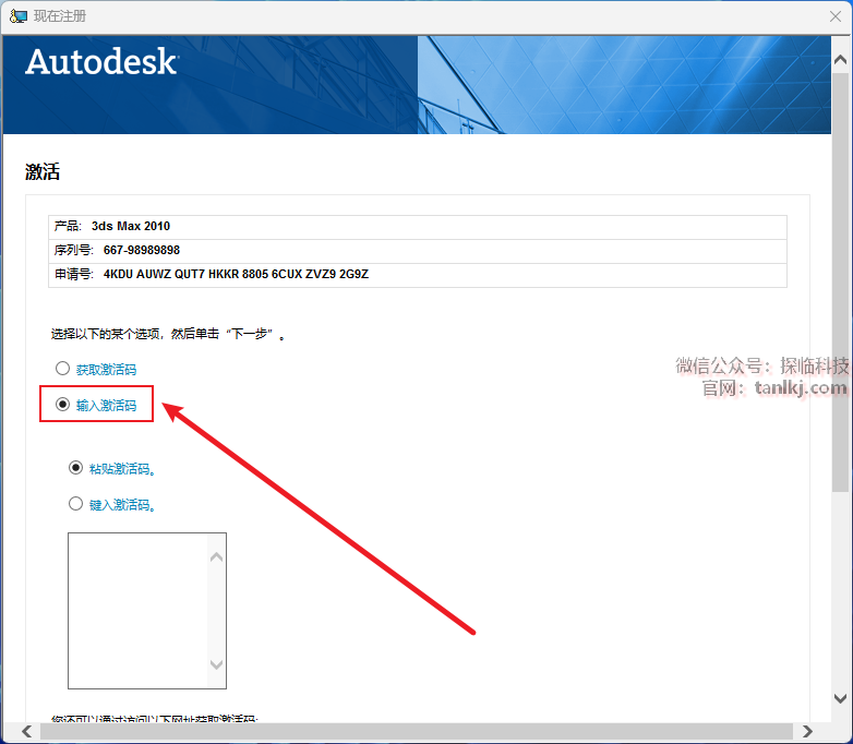 ②复制【Activation】框中的激活码粘贴到指定位置;