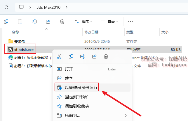 打开之前解压后的文件夹,右键程序【xf-adsk】,点击【以管理员身份运行】。